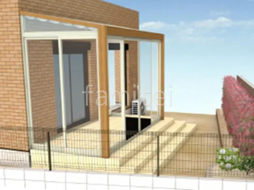 既存の木製デッキを撤去し、LIXIL ガーデンルームGFとタイルデッキ LIXIL グレイスランドを設置しました。床がタイルデッキですので清掃性が高く、お掃除は水を流してデッキブラシでこすればOKです。3方をサッシで囲ったガーデンルームですので雨を気にしない物干し場としてもお使いいただけます。