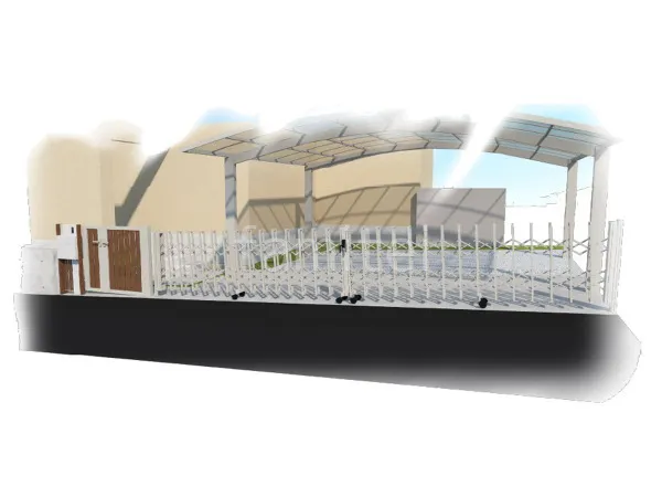 機能門柱 LIXIL ウィルモダン、玄関門扉 LIXIL AB ウッディTS2型 親子両開き、伸縮門扉 LIXIL セレビューMK型 傾斜地用 両開きを設置し、クローズ外構へリフォームしました。門扉が第三者の侵入を抑え、防犯対策になっています。