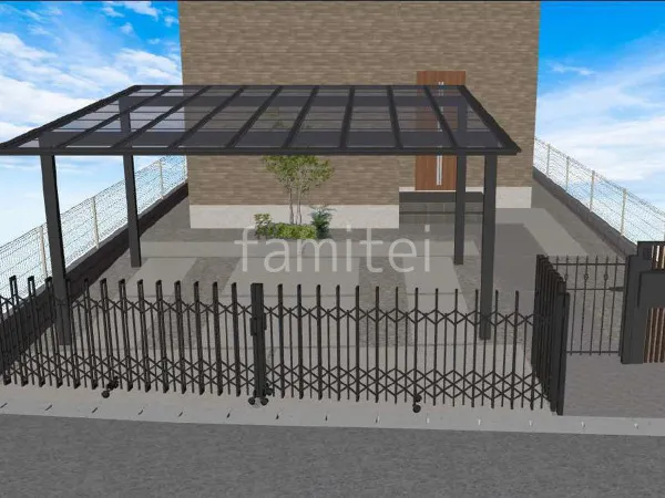 玄関門扉 LIXIL ラフィーネ2型 片開きと、伸縮門扉 四国化成 バリューアコーA2型 両開きを設置することでクローズ外構になりました。玄関門扉と伸縮門扉の間にはプランパーツ角柱を取り付け、見栄えが良くなるだけではなく第三者の侵入も防ぎます。