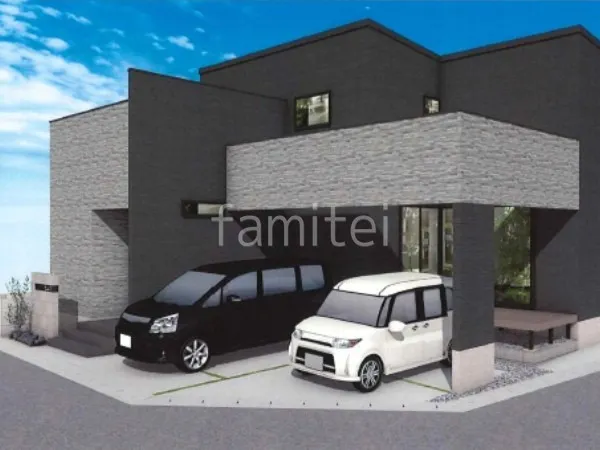 駐車場の人工芝目地が温かみのある新築シンプル オープン外構