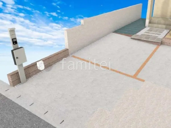 駐車スペースの一部を土間コンクリートにやり替え、水はけの良く安定したスペースにしました。 また1台用カーポート LIXIL ネスカRを設置し、車を雨風から守るります。 カーポート周りには跳ね上げゲート LIXIL オーバードアS1型と、引き戸 LIXIL アーキスライドA型を設置して、防犯性を高めました。 エントランスでは既存門柱を撤去し、機能門柱 YKKAP シンプレオポストユニット1型にやり変え、シンプルなデザインでスマートな印象に仕上げました。