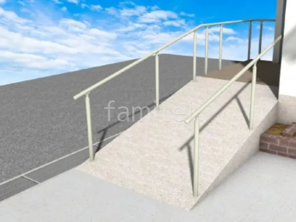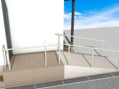 玄関階段を解体し、スロープに変更することで、どなたでも安全に出入りができるバリアフリーなスペースに仕上げました。 さらに、手すり LIXIL グリップラインを設置することで、安全性を向上しました。