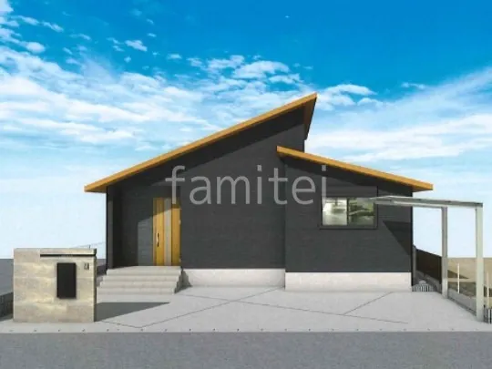 斜めデザインの伸縮目地がかっこいい新築シンプル オープン外構