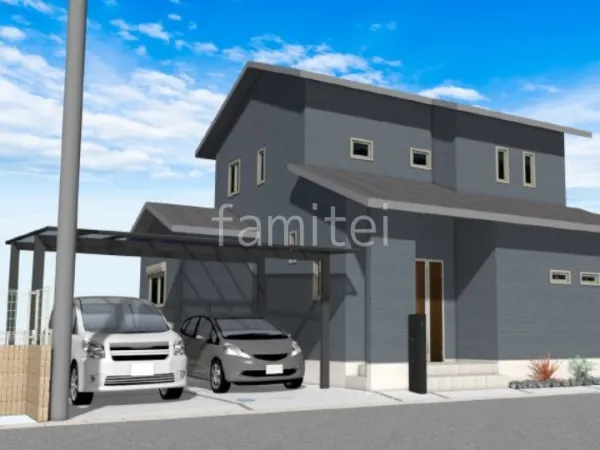 エントランスに宅配ボックス付き機能門柱 LIXIL FTを設置し、洗練されたデザインで荷物の受け取りをスムーズにします。 また、建物前にはロックガーデンを配置し、自然の風合いをプラスしました。 駐車スペースには2台用カーポート YKKAP エフルージュFIRSTを設置することで、車を雨や風からしっかりと守ります。 お庭には人工芝を敷き、メンテナンスフリーで美しい緑を楽しめます。