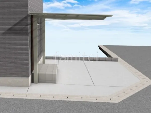 駐車スペースに1台用カーポート LIXIL フーゴFを設置し、逆勾配タイプを採用することで雨水などが家側に流れにくくなり、車を雨や日差しからしっかり保護します。 また、土間コンクリートを施工することで、耐久性を上げ、安定した足場を提供します。 そして、ベランダには2Fベランダ屋根 YKKAP ソラリアFを設置し、雨の日でも快適に利用できるスペースを作りました。