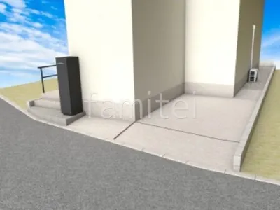 玄関階段に形材フェンス LIXIL フェンスALを設置し、スタイリッシュなデザインで安全性を確保しました。 また、門まわりに宅配ボックス付き機能門柱 ユニソン ミースを採用し、不在時でも荷物の受け取りが可能な利便性の高いエントランスに。 さらに、建物周囲には防草シートと砂利を敷き、雑草の発生を抑えつつ、メンテナンスフリーな空間に仕上げました。