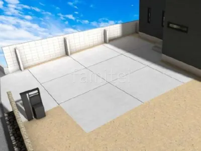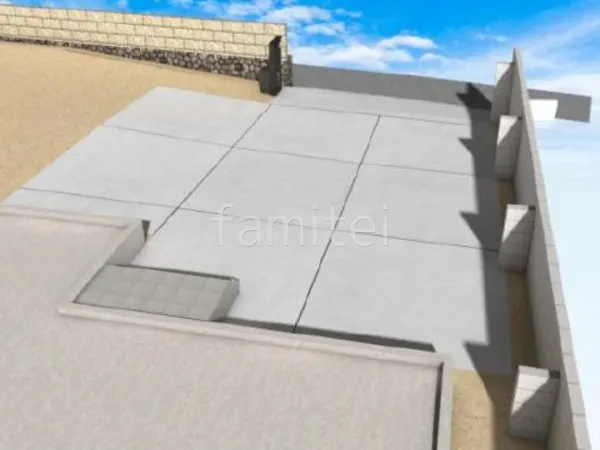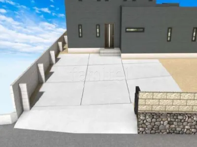 広々とした駐車スペースを耐久性の高い土間コンクリートで仕上げることで、清潔感があり、長期的に使用できるようにしました。 さらに、道路と駐車スペースを繋ぐ部分には、車の出入りがスムーズになるようにスロープを施工しました。