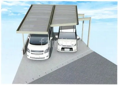 駐車スペースに2台用カーポート 三協アルミ Uスタイルアゼストを設置し、スタイリッシュな外観でありながら、敷地の形状に合わせて梁の延長やカット加工を施すことで、空間にぴったりとフィットした仕上がりを実現しました。