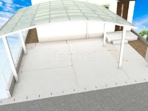 駐車場まわりや目地に生えた雑草を撤去し、土間コンクリート仕上げにすることで、雑草の再発を防ぎ、清潔感の高いスペースに仕上げました。 さらに、2台用カーポート YKKAP アリュースを設置し、雨風や直射日光から車を保護します。