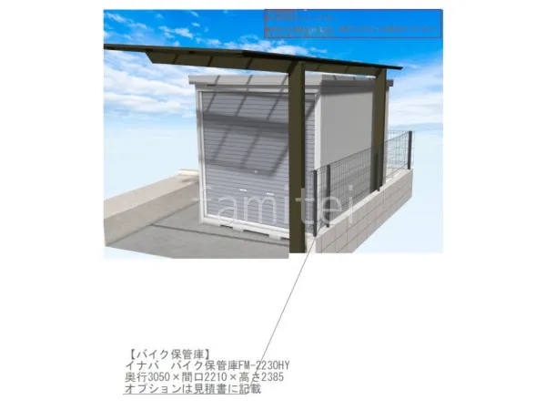 既存カーポート下のスペースを有効活用し、新たにバイク保管庫 イナバ FM-2230HYを設置し、雨風や直射日光からバイクを守ることで、長期的な保管にも安心です。 また、カーポートの下に設置することで雨に濡れずに快適に車体を出し入れすることができます。