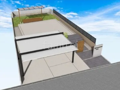 大判タイル タカショー セラウォールのタイル門柱と300角タイル LIXIL パセオのアプローチでエントランスに重厚感と高級感を演出します。 また、目隠しスクリーン LIXIL 木製調プログコートF1型を設置することで、プライバシーを守りながらエントランスに温もりを添えました。 駐車スペースには2台用カーポート LIXIL カーポートSCを設置し、スマートな印象をプラスしました お庭には人工芝を敷き、メンテナンスフリーで美しい緑を楽しめる空間に。 さらに、ウッドデッキ YKKAP リウッドデッキとテラス屋根 YKKAP サザンテラス パーゴラタイプを組み合わせることで、天候に左右されず家族の憩いの場として快適に過ごせます。