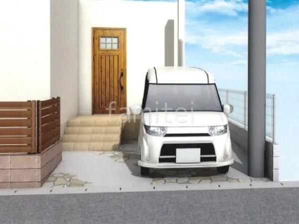 玄関階段の一部を解体・撤去してスペースを確保し、アプローチ周囲を土間コンクリート仕上げにすることで、駐車スペースとして活用できるよう整備しました。 お庭スペースには、テラス屋根 LIXIL フル木製調シュエットを設置し、前面パネルを加えることでプライバシー性と快適性を高めました。 また、レンガを使用して花壇スペースを作ることで、季節の移ろいなどを楽しめる空間に仕上げました。