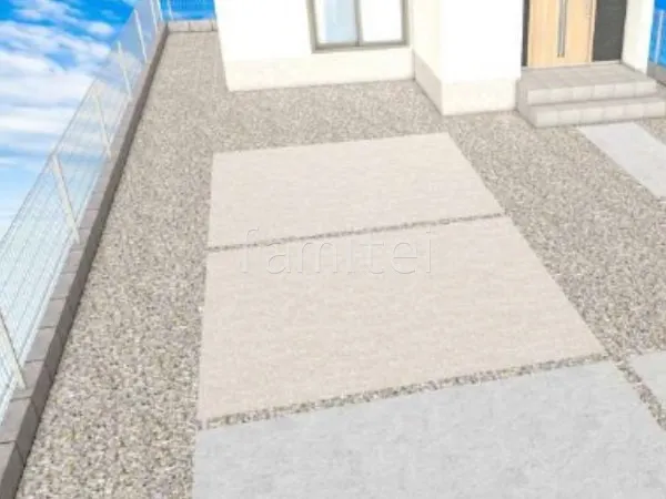 駐車場後方の土部分を撤去し、土間コンクリート仕上げとすることで、雨天時のぬかるみや雑草の発生を防ぎ、快適で清潔な駐車スペースを確保しました。 さらに、2台用カーポート LIXIL ネスカRを設置し、雨や直射日光から車を守ります。 加えて、既存の機能門柱を玄関前から道路側に移設することで動線を最適化し、使い勝手を向上しました。