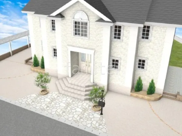 白い乱形石が明るく華やかな新築ナチュラル オープン外構