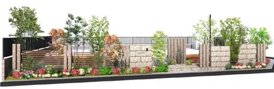 木製調を合わせることで素敵な新築和モダン オープン外構
